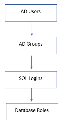 This alert closes a huge gap in SQL security auditing. Let's take a look at the recommendations by Microsoft for managing DB security. Users go into groups -> groups become logins -> logins go into DBs.